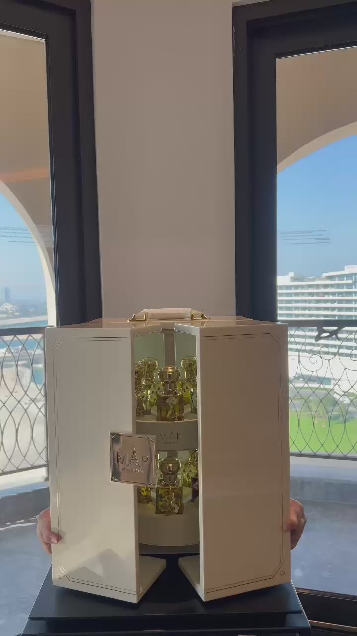 Crafted from smooth beige wood, this refined malle is designed to hold up to 8 perfumes of your choice, offering a sophisticated way to organize and display your personal fragrance collection.